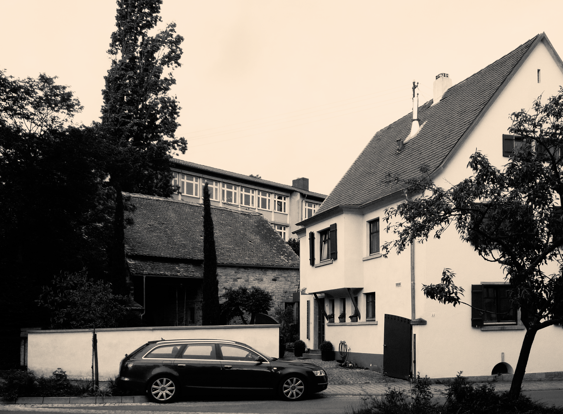 Vorderhaus mit Hof und Scheune bilden ein typisches Ensemble an der Weinstraße.
