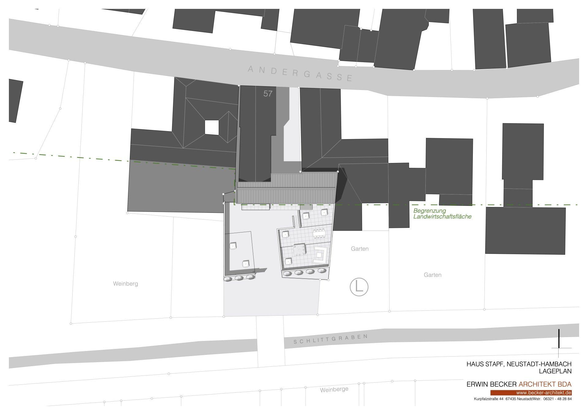 Wohnhausanbau in zweiter Reihe als Abschluss zu den Weinbergen.