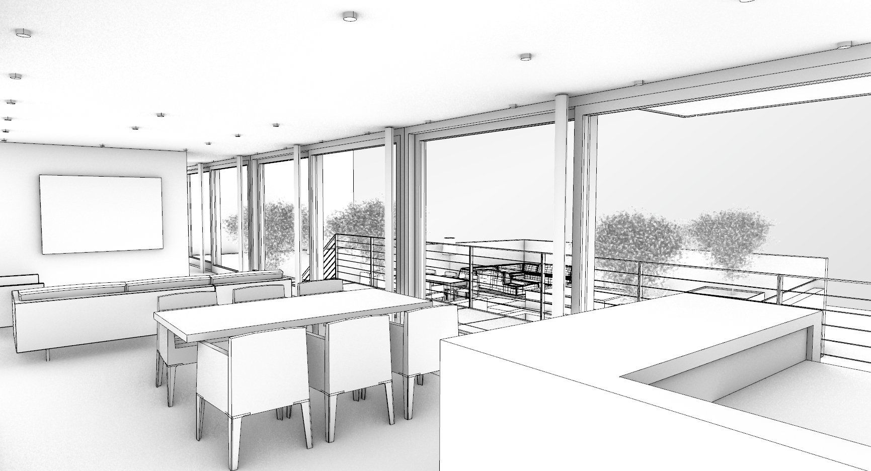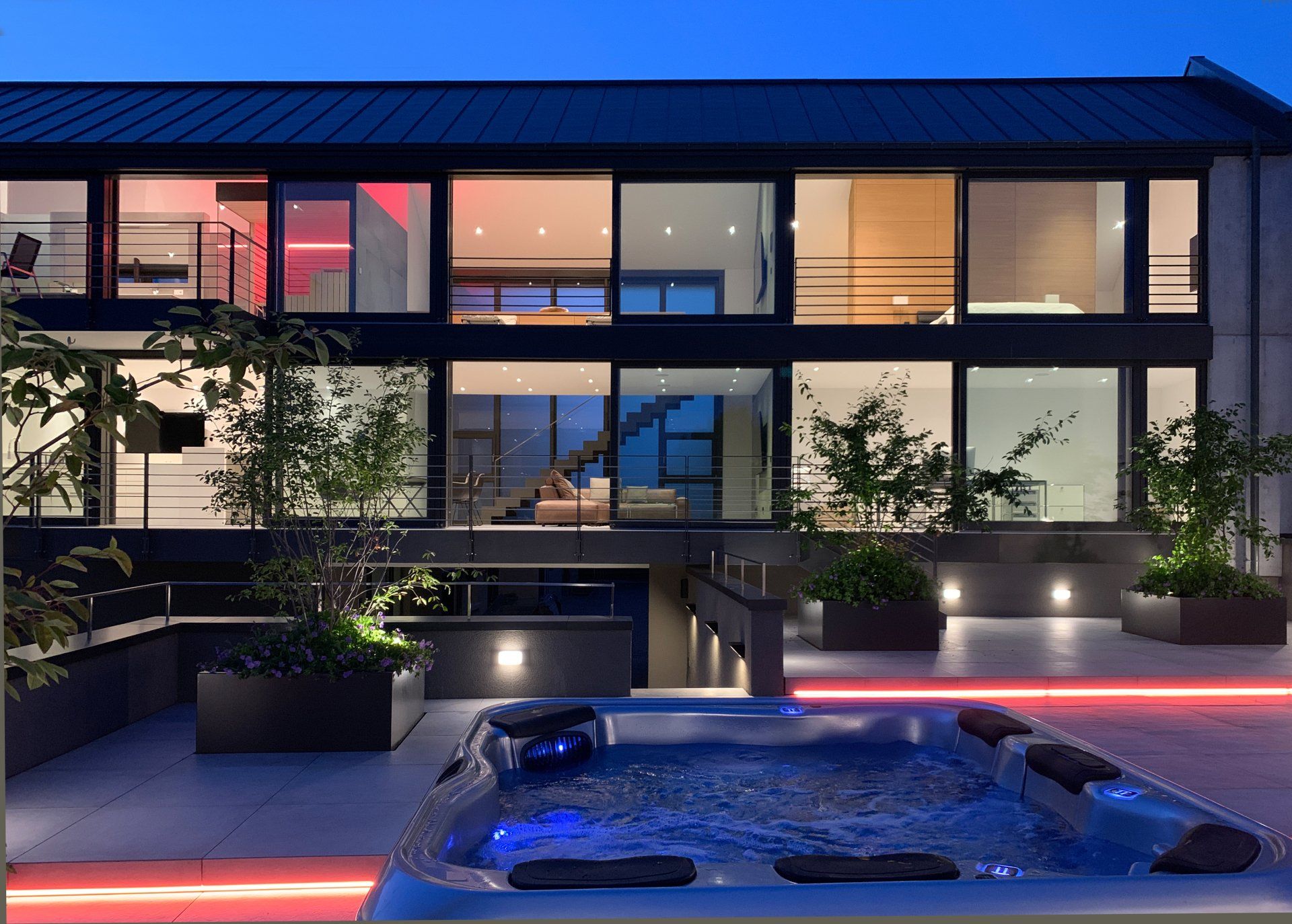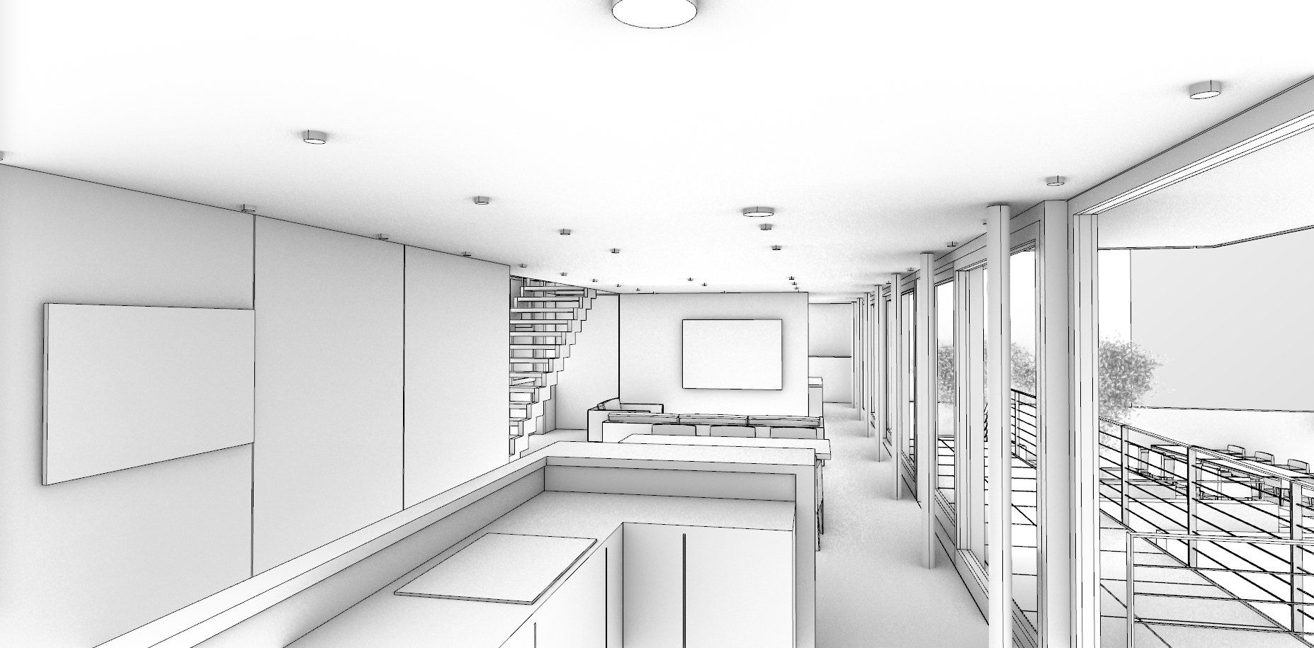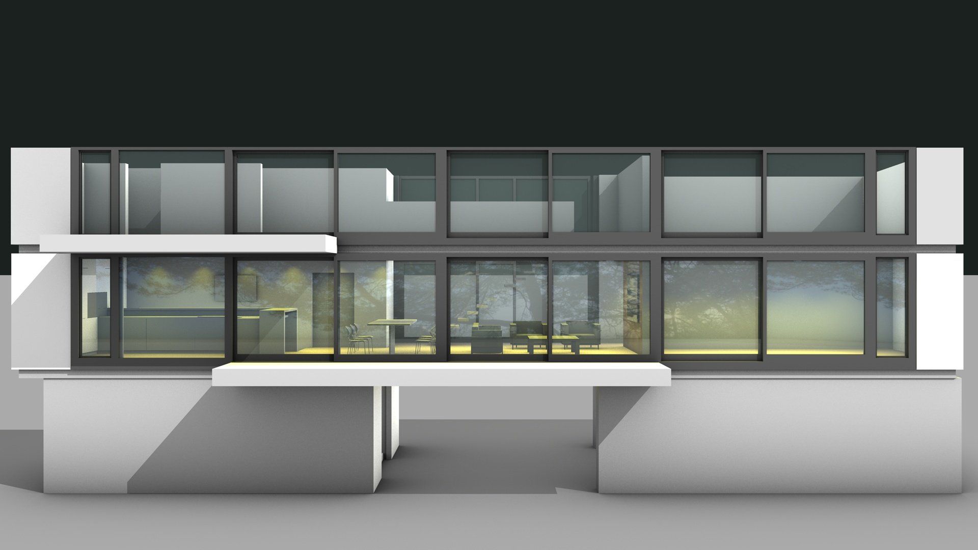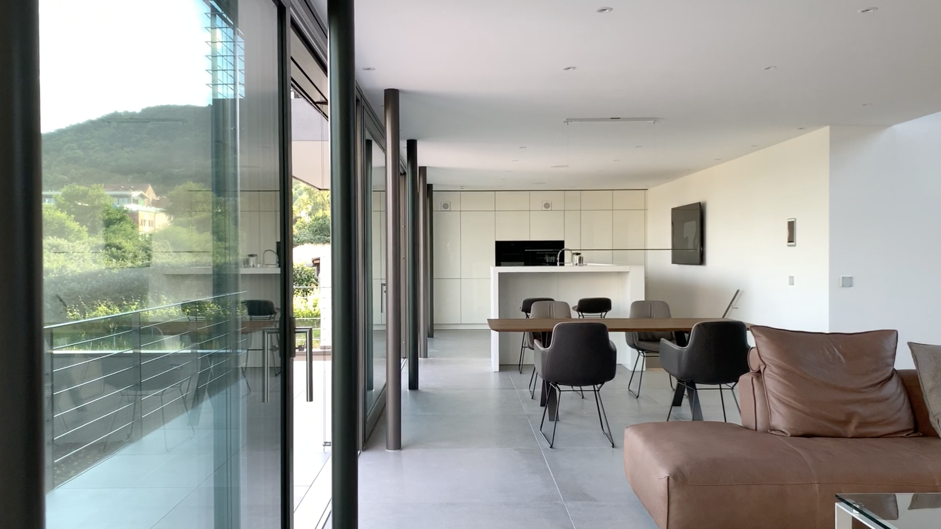 den Weinbergen hin komplett verglast. Die tragenden Außenwände
