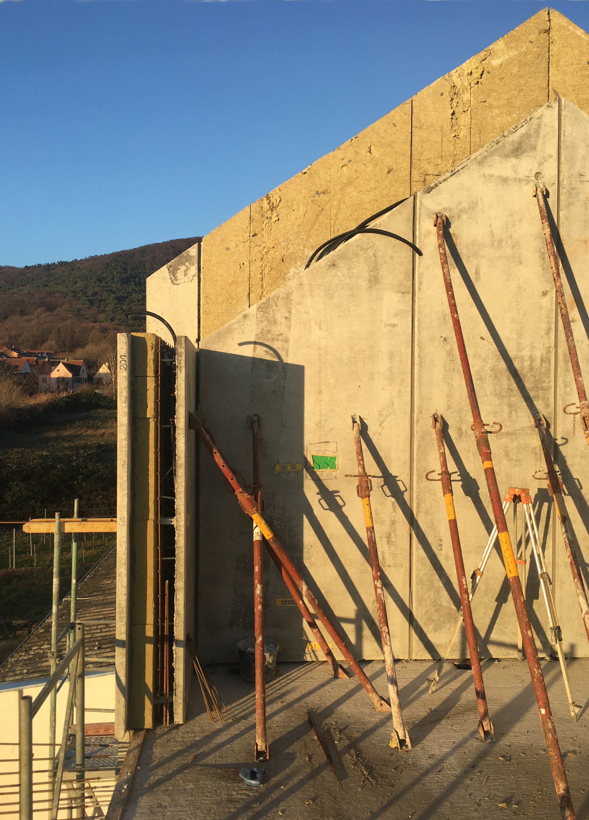 bestehen aus Stahlbetonfertigteilen mit Kerndämmung.