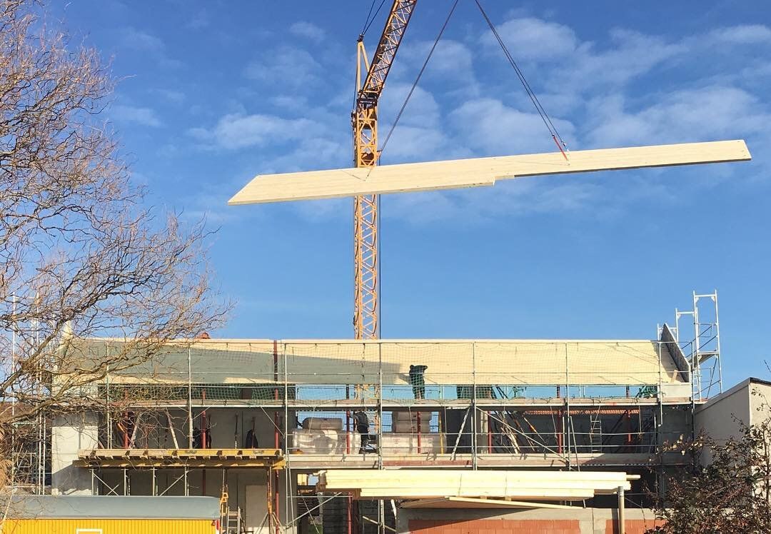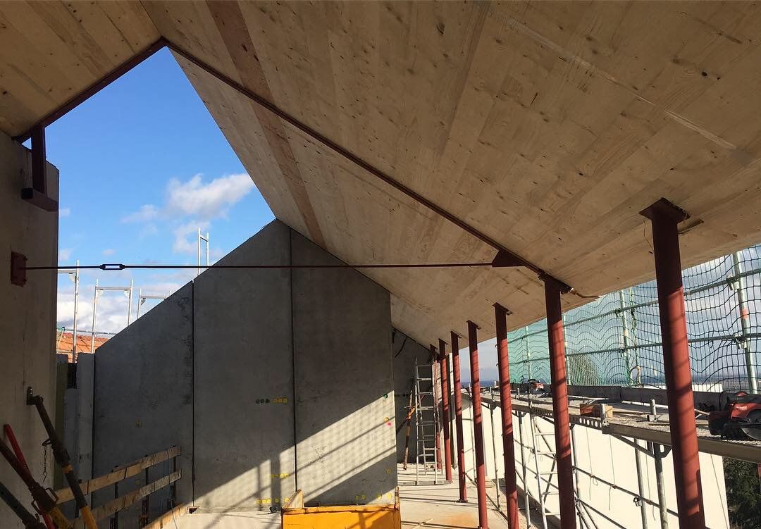 sind die beiden Wohngeschosse als Brückenbauwerk errichtet und zu