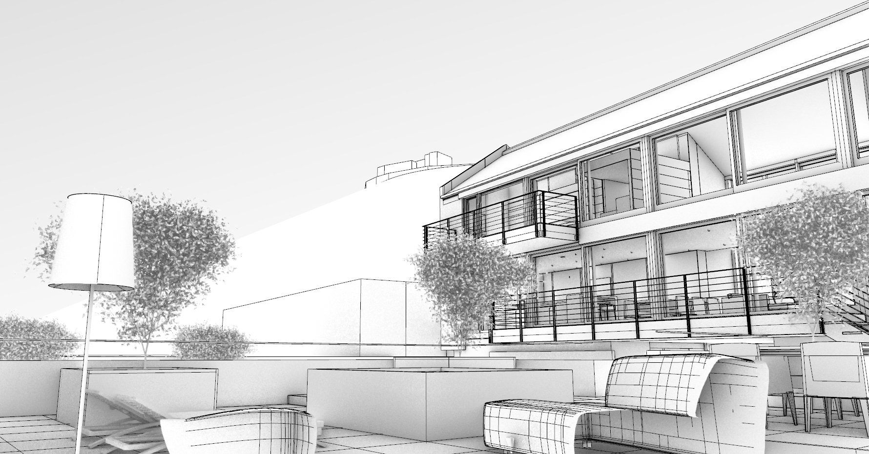 Die Einfriedung des Außenbereichs, der Hof und die Terrassenfläche