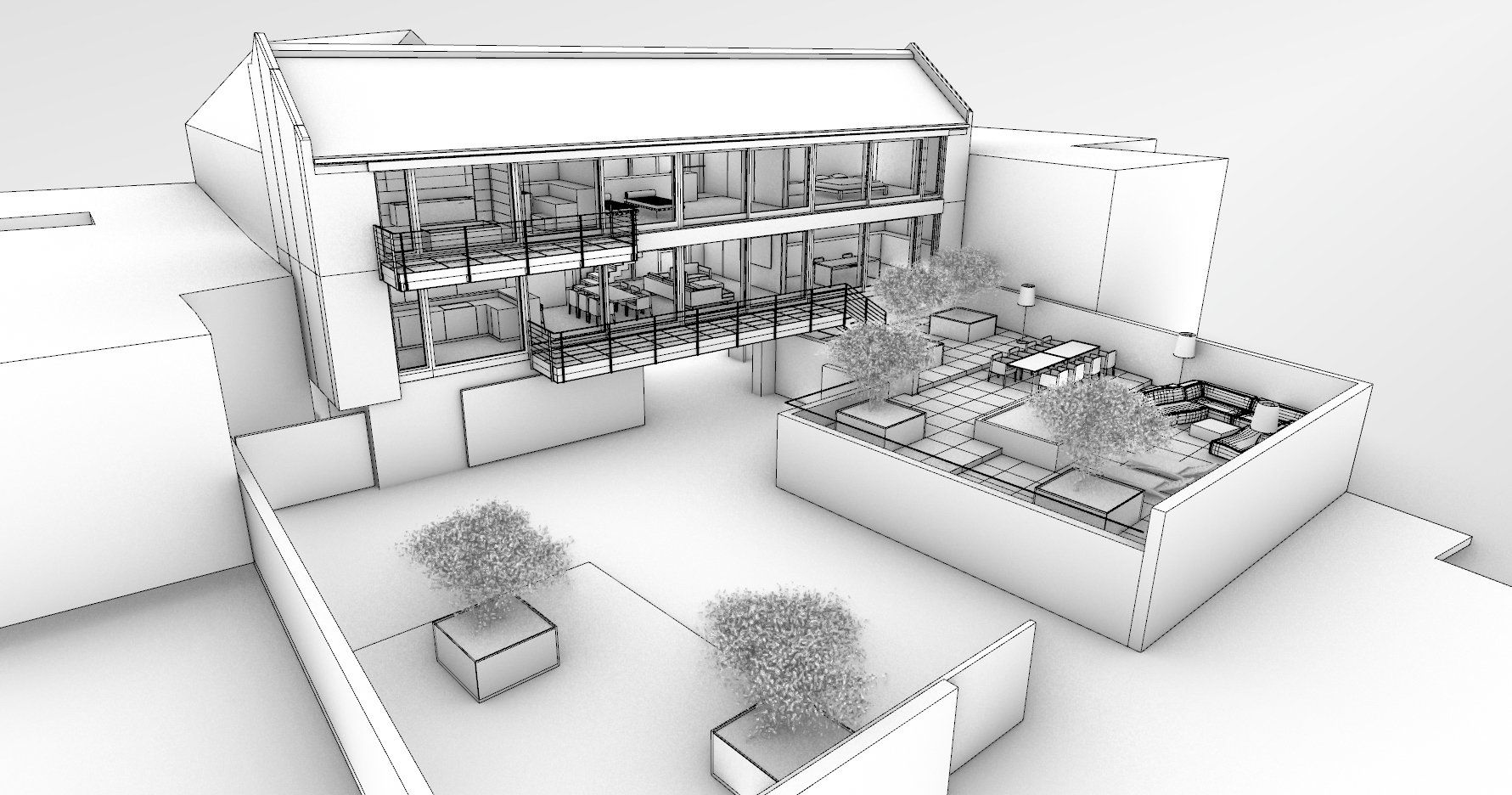 Auf einem schmalen Restgrundstück erstreckt sich über einem vorhandenen