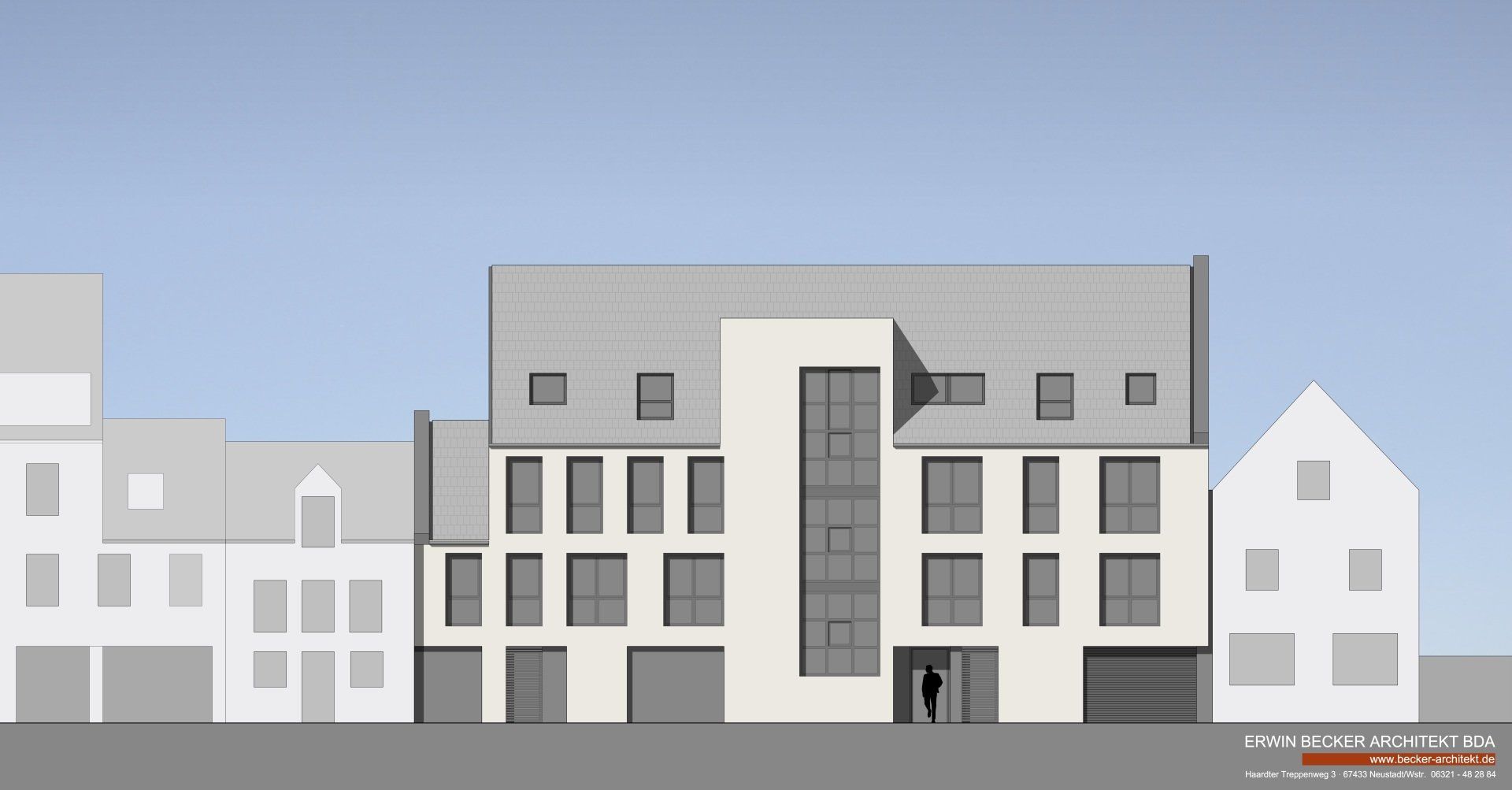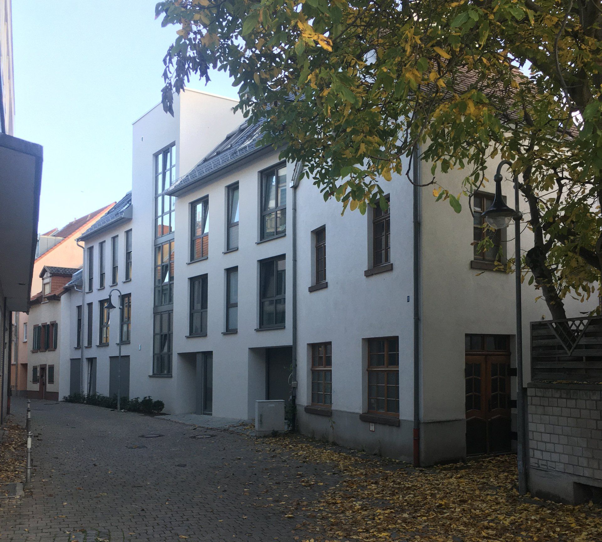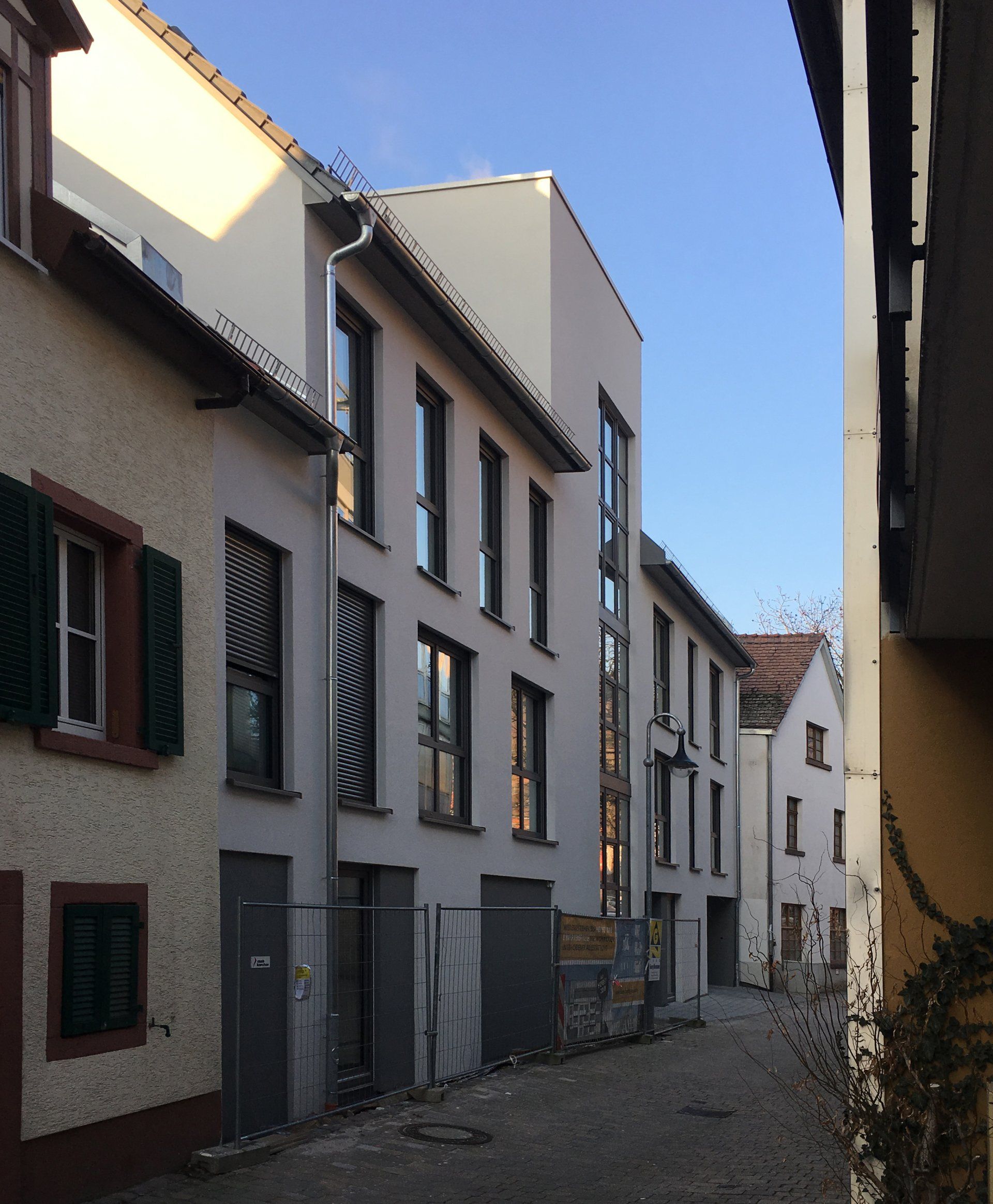 Innerstädtischer Wohnungsbau mit 8 Wohneinheiten in einer schmalen Innenstadtgasse auf einem ehemaligen Gewerbegrundstück als Baulückenschliessung errichtet.