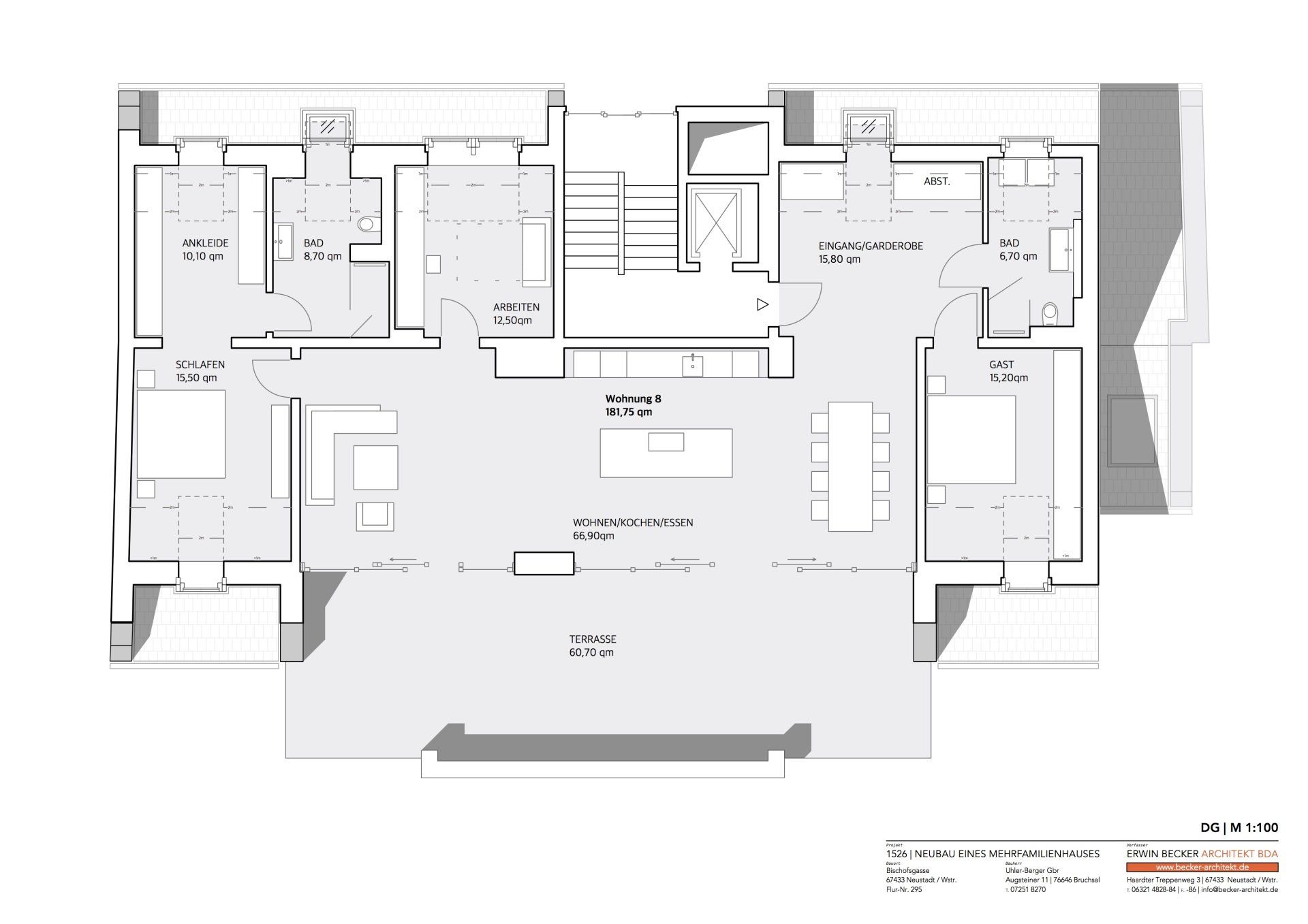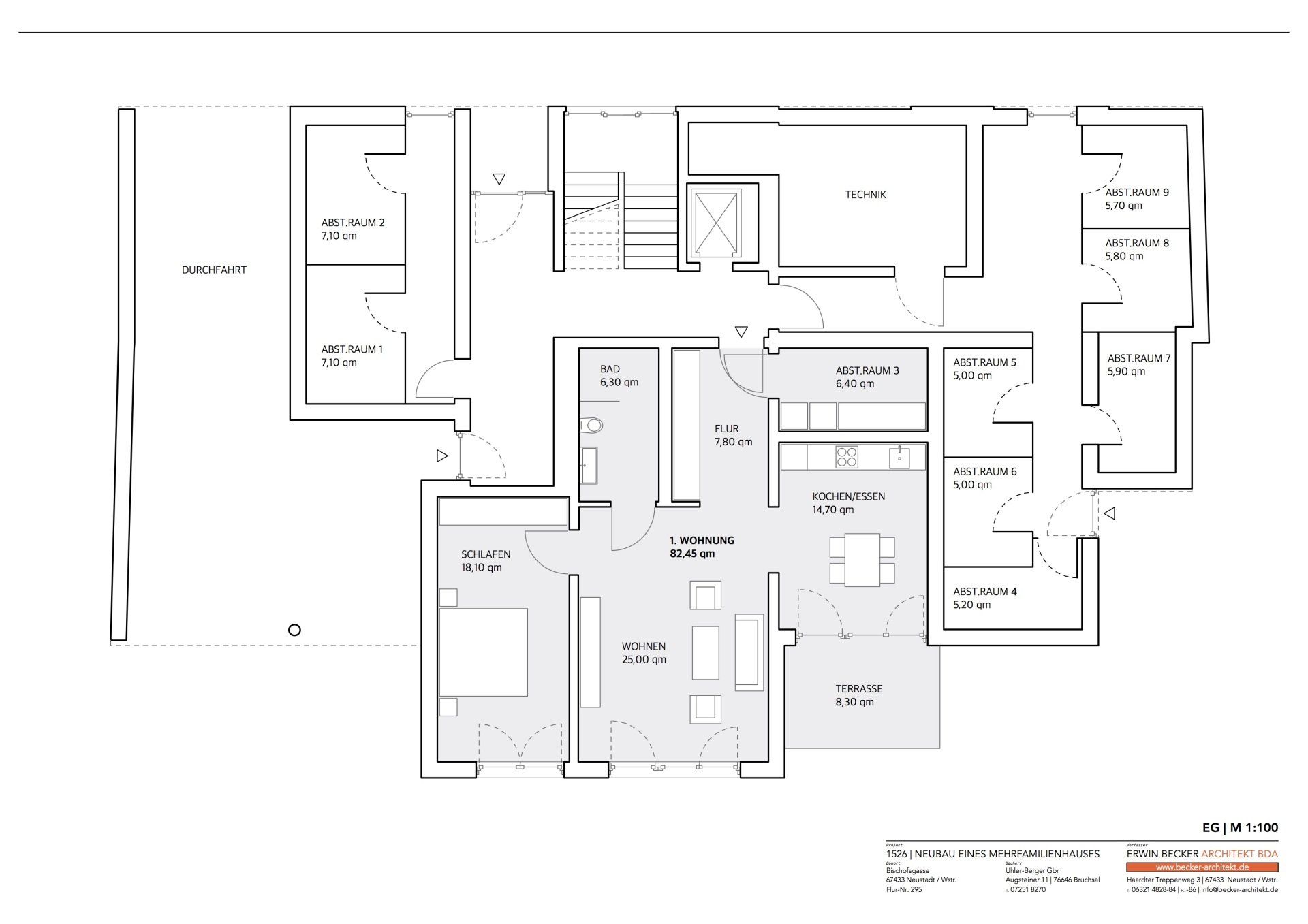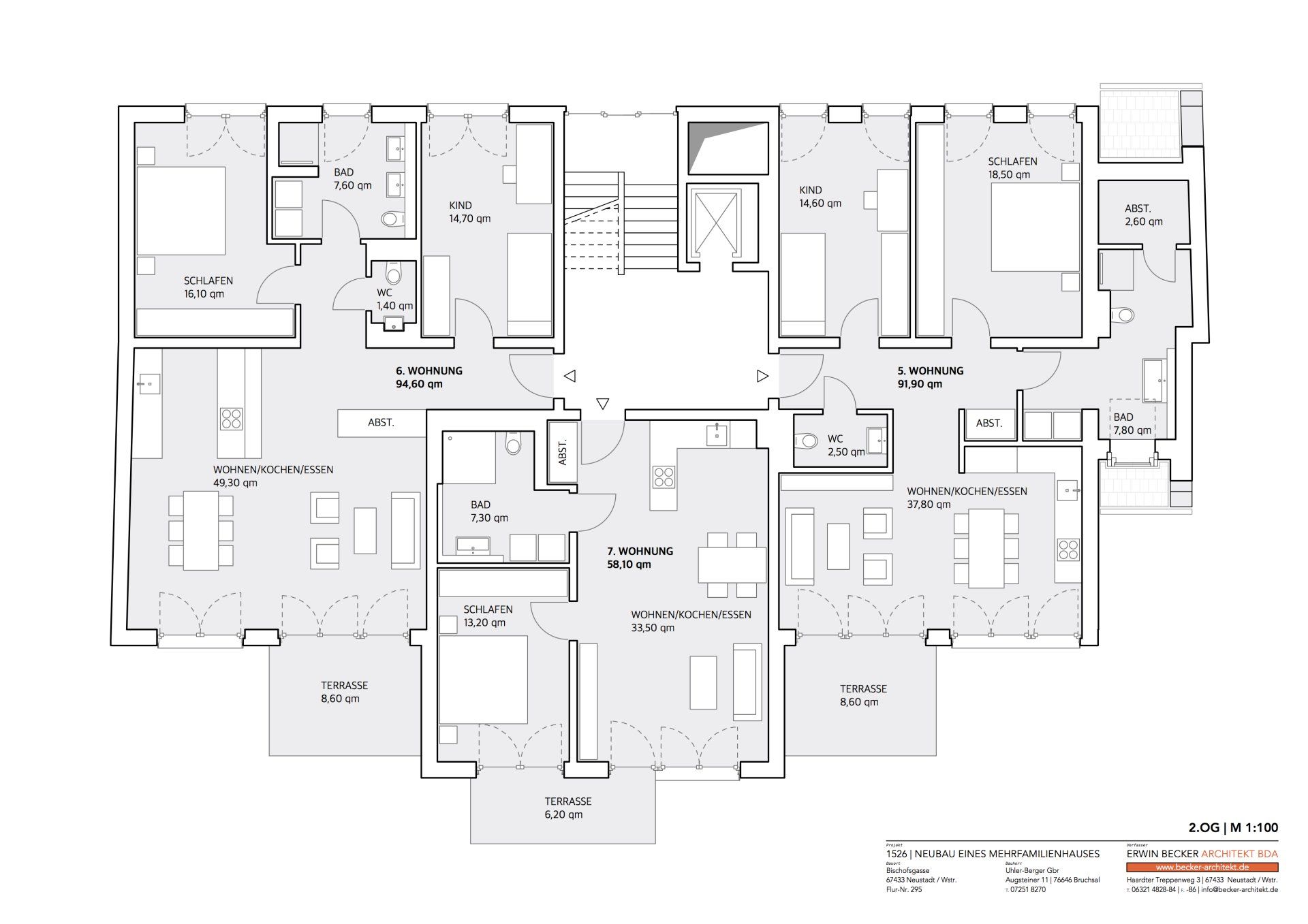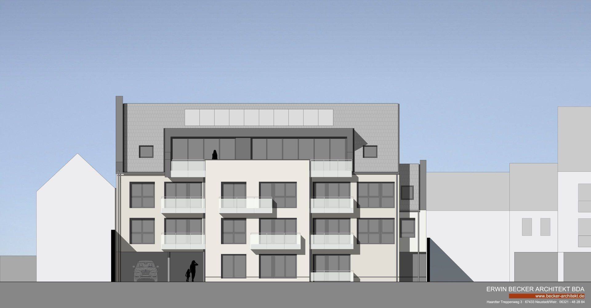 Innerstädtischer Wohnungsbau mit 8 Wohneinheiten in einer schmalen Innenstadtgasse auf einem ehemaligen Gewerbegrundstück als Baulückenschliessung errichtet.